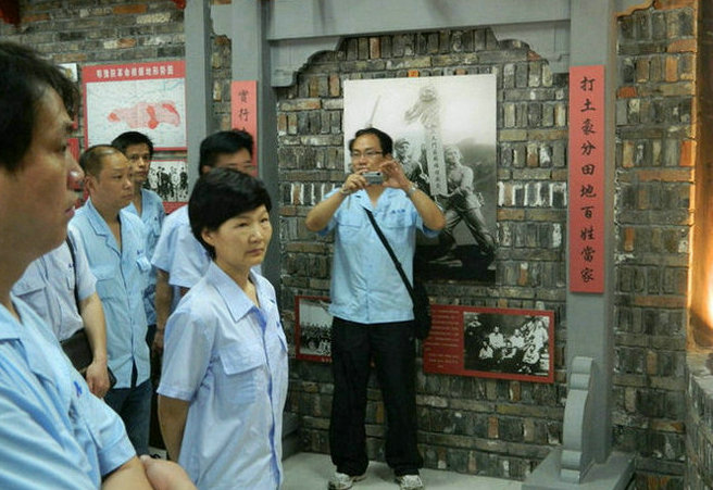 三、憶崢嶸歲月,緬懷革命先烈伴隨著淅瀝小雨,所有黨員在烈士紀(jì)念館前集合,在烈士紀(jì)念館工作人員的帶領(lǐng)下,隨即開始了正式參觀。烈士紀(jì)念館里,陳列著許多珍貴的歷史文物,有革命烈士使用過的步槍、手榴彈、刺刀等,仿真的場景和人物蠟像,生動(dòng)地展示了當(dāng)時(shí)革命的艱苦歲月。一件件珍貴的遺物,一張張模糊的照片,一段段翔實(shí)的文字,讓我門腦海中那模糊的艱難歲月再一次清晰起來。